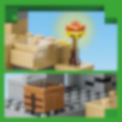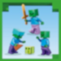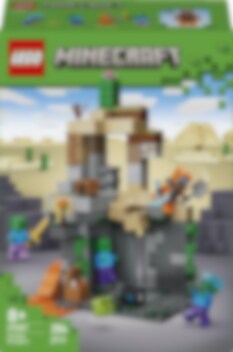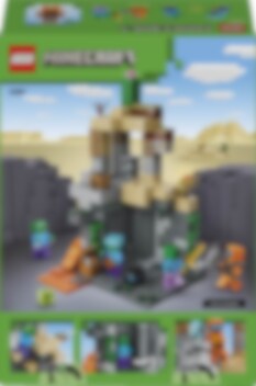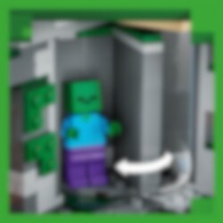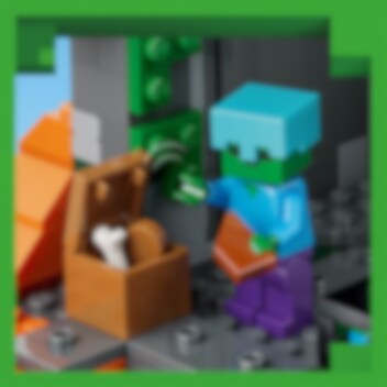 Stellen Sie sich einer Horde Minecraft-Zombies in der Höhle! Die Zombiehöhle (21587) ist ein Minecraft-Set voller Höhlen-Action in der Wüstenlandschaft. Der Wüstenwanderer, ausgestattet mit Diamant-Axt, Keule und Netherit-Ausrüstung, trifft auf einen Schleimwürfel und drei Zombies. Probieren Sie die rotierende Kammer, die Zombies zum Leben erweckt, und lösen Sie den Steinschlag mit dem Gleitmechanismus aus. 284 Teile. Empfohlenes Alter: 8+.