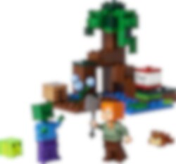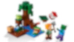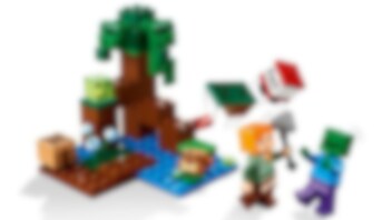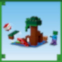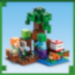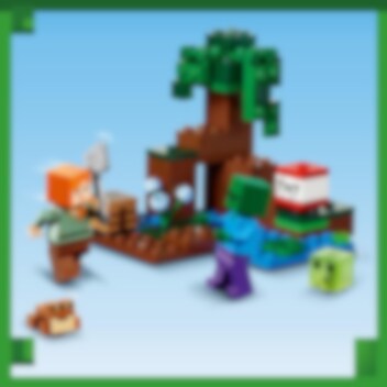 LEGO® Minecraft® Das Sumpfabenteuer (21240) ist eine tolle Belohnung für Minecraft Spielerinnen und Spieler ab 7 Jahren, die mit diesem Set aktiv bauen und kreativ spielen können. Faszinierendes Minecraft Spielzeug zum Bauen und Erkunden Lass dein Kind mit dieser greifbaren Version des gefährlichen Sumpf-Bioms aus Minecraft kreativ bauen und spielen. Dieses vielseitige Spielzeug beinhaltet einen beliebten Minecraft Charakter: Alex streift bei diesem spannenden Abenteuer durch Morast und Mangroven. Neben all den kreativen Baumöglichkeiten sorgen auch 2 feindselige Monster – ein Zombie und ein Schleim – für reichlich Nervenkitzel. Ein freundlicher Frosch sitzt auf einem Seerosenblatt und beobachtet die spannenden Duelle. Alex kann ihre Axt schwingen. Und dein Kind kann den Hebel umlegen und das TNT explodieren lassen, um jeden Angriff abzuwehren. Für zusätzliches digitales Vergnügen beinhaltet die LEGO Builder App intuitiv nutzbare Vergrößerungs- und Drehfunktionen, die dein Kind das Modell beim Bauen näher betrachten lassen.