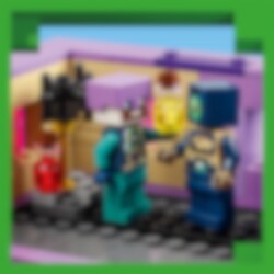 Begleite den Ender-Entdecker und den Enderritter auf eine spannende Mission ins Endbiom. Kämpfe mit dem pfeilschnellen und wendigen Enderdrachen, der deinen Mut und dein Können auf die Probe stellt. Verjage den Enderman und den Shulker. Erkunde dann das mächtige Endschiff mit Drachenkopf am Bug. Flüchte durch das Ausgangsportal und nimm das begehrte Ei des Enderdrachen mit!