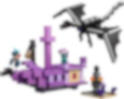 Der Enderdrache und das Endschiff (21264) ist ein Bauspielzeug zum Videospiel. Das Spielset für Kinder beinhaltet viele beliebte Minecraft® Charaktere und lädt zu Abenteuern an Bord eines Schiffs und Actionspaß mit einem Drachen ein. Dieses Minecraft Set mit Drachen ist das perfekte Geschenk für Kinder ab 8 Jahren, die gern Spielzeug aus LEGO Steinen bauen. Die Spieler betreten das gefährliche Endbiom, wo sie es mit dem Enderdrachen aufnehmen müssen. Alle Gliedmaßen dieser voll gelenkigen Minecraft Figur sind beweglich und lassen sich verstellen. Man kann die Seiten und das Dach des Endschiffs abnehmen, um Zugang zum voll eingerichteten Innenraum zu erhalten. Den Drachenkopf am Bug kann man abnehmen und als Helm tragen. Im Schiff finden Kinder einen Braustand mit Heiltränken. Ein Ender-Entdecker mit Elytren und Feuerwerksrakete, ein Enderritter, ein Shulker und ein Enderman laden zum Spielen ein. Ein begehrtes Drachen-Ei ist als Zubehör enthalten. Zusätzlichen digitalen Bauspaß bietet die intuitive LEGO® Builder App, die Baumeister 3D-Modellansichten vergrößern und drehen und ihren Baufortschritt verfolgen lässt.