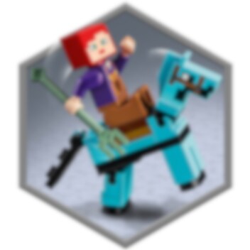 Es macht großen Spaß, die Pferde im Minecraft Stall zu versorgen – es ist aber auch gefährlich! Öffne die Stalltüren, um Karotten an die beiden Pferde zu verfüttern. Ein Skelettreiter kommt auf einem Skelettpferd angeritten! Hat er es auf die goldene Karotte abgesehen? Kannst du ihn verscheuchen? Baue dann einen Parcours. Wird das große Pferd schneller sein als das kleine Pony? Oder wird es von seiner Diamantrüstung zu sehr gebremst?