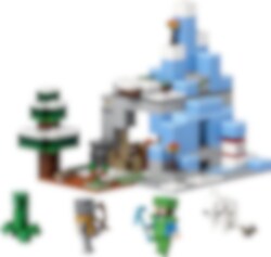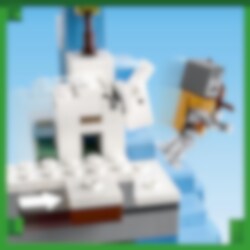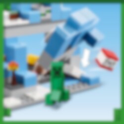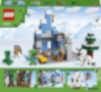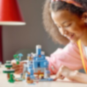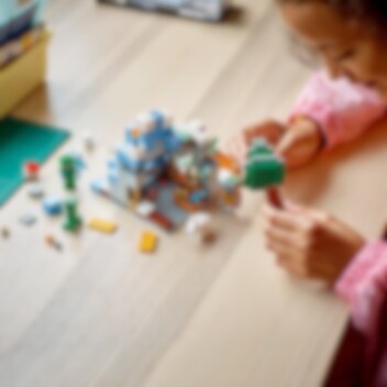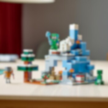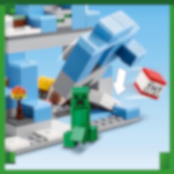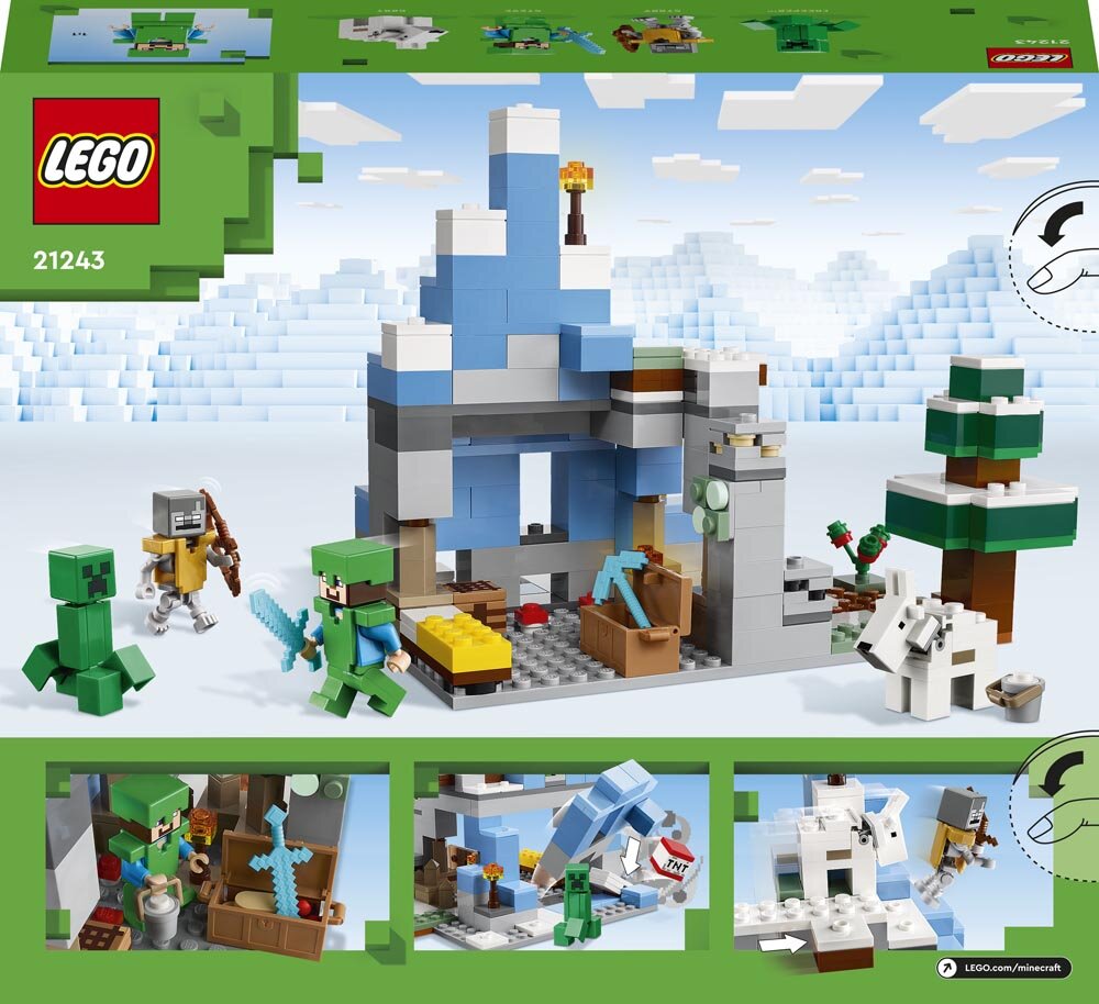 LEGO® Minecraft® Die Vereisten Gipfel (21243) beinhaltet jede Menge Details und Funktionen, die Spielerinnen und Spielern ab 8 Jahren viele packende Minecraft Abenteuer erleben lassen. Freu dich aufs Bauen, Kämpfen, Erkunden und Sprengen! Minecraft Spielerinnen und Spieler werden die Schauplätze in den Vereisten Gipfeln und in der Taiga sofort erkennen. Und sie werden ihr ganzes Minecraft Können aufbieten, um die Kohle, das Eisen und das Smaragderz unter dem Eis auszugraben. Bevor dein Kind mit dem Graben beginnt, muss es jedoch zunächst einen sicheren Unterschlupf bauen und Nahrung sammeln. Wenn dir die legendären Gegner – ein Creeper und ein Eiswanderer – zu nahe kommen, hast du 3 Möglichkeiten: Du kannst durch die gefährliche Tropfsteinhöhle flüchten, den Berg mit dem TNT sprengen, um deinen Unterschlupf zu erreichen, oder die Rammfunktion der Ziege benutzen, um die feindseligen Kreaturen von der Felskante zu stoßen! Coole Funktionen und authentisches Zubehör lassen den Minecraft Spaß niemals enden. Für zusätzliches digitales Vergnügen beinhaltet die LEGO Builder App intuitiv nutzbare Vergrößerungs- und Drehfunktionen, die dein Kind das Modell beim Bauen näher betrachten lassen.