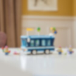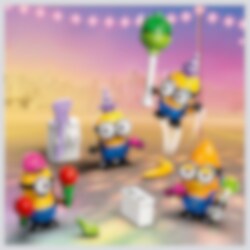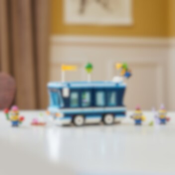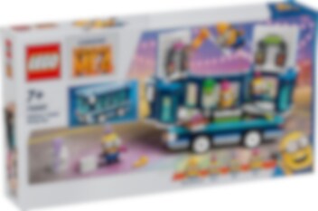 LEGO® Ich – Einfach unverbesserlich 4 Minions und der Party Bus (75581) bietet den Fans der Minions Spielsets und Kindern, die Spielzeugautos lieben, gleich doppelten Spielspaß. Man kann den Spielzeugbus schieben oder für eine superlustige Minion-Party öffnen. Das vielseitige Spielzeug zu Ich – Einfach unverbesserlich 4 von Illumination und ist ein tolles Geschenk für Jungen und Mädchen ab 7 Jahren und für Fans des Film. Das Set beinhaltet 4 Minions: Phil, Mel, Dave und den fliegenden Mega Minion Gus, der im Film Ich – Einfach unverbesserlich 4 seinen ersten Auftritt hat. Der Bus hat einen Fahrersitz und eine Dachreling, an der sich Gus gut festhalten kann. Wenn man eine Seite herunterklappt und das Dach abnimmt, kommen die Tanzfläche, das DJ-Pult, eine E-Gitarre, ein Klavier, ein Mikrofon, Lichter, Lautsprecher und ein Whirlpool zum Vorschein! Viele der Elemente kann man herausnehmen, um vor dem Bus weiterzuspielen. Dieses bunte Kinderspielzeug strotzt vor coolem Zubehör. Eine Flagge, ein Luftballon, ein Eis, Hüte, Getränke, Lichter und Bildschirme laden zum Spielen ein. Und die LEGO Builder App bietet Kindern zusätzlichen digitalen Bauspaß.