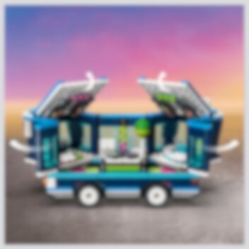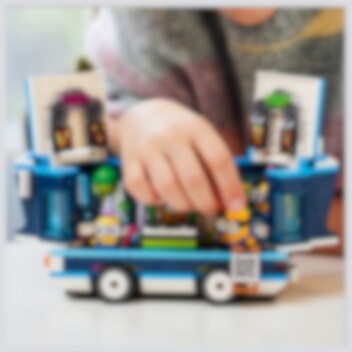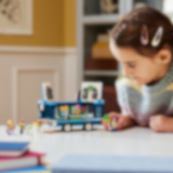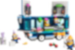 Sobald der Bus anhält, wird gefeiert! Öffne die Seiten und das Dach, um die Tanzfläche, das DJ-Pult, die E-Gitarre, das Klavier, das Mikrofon, die Lichter, die Lautsprecher und den Whirlpool preiszugeben. DJ Phil legt Musik auf, während sich Mel und Dave nach Eis und Getränken umsehen. Sogar Mega Minion Gus könnte vorbeigeflogen kommen, um ein Tänzchen zu wagen!