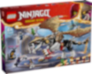 Egalt der Meisterdrache (71809) ist ein großes Ninja-Spielset, mit dem Kinder ab 8 Jahren die spannenden Abenteuer aus der 2. Staffel der TV-Serie NINJAGO® Aufstieg der Drachen nachstellen können. Der allererste Meisterdrache in einem NINJAGO Spielset kann Beine, Flügel, Kopf und Schwanz bewegen, schwingt ein Schwert und trägt eine Scheide für ein Katana auf dem Rücken. Dieses Abenteuer-Spielset beinhaltet 5 Minifiguren: Die Ninja-Helden Lloyd, Sora und Nya, die jeweils ein Schwert tragen, sowie die beiden Bösewichte Lord Ras (mit einem Hammer) und Cinder (mit einem Schwert) lassen Kinder spannende Ninja-Abenteuer nachstellen. Auf einem kleinen Baum aus LEGO Steinen befinden sich der Hammer der Zertrümmerung und der Gong der Zertrümmerung. Um diese beiden Schätze geht es in den Duellen, die sich die 5 NINJAGO Charaktere liefern. LEGO® NINJAGO Bau- und Spielsets für Kinder beinhalten Mechs, Fahrzeuge und Tempel für spannende Rollenspiele und Abenteuer. Jedes dieser Actionspielzeuge kann auch mithilfe der LEGO Builder App gebaut werden, die dich und dein Kind auf ein ebenso einfaches wie intuitives Bauabenteuer mitnimmt.