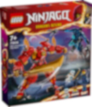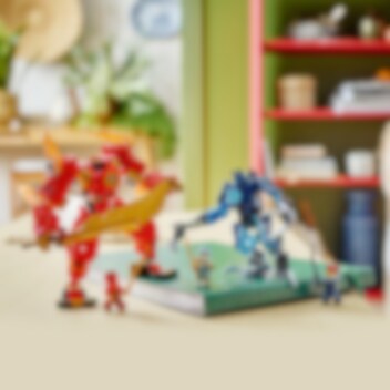 Mit Kais Feuermech (71808) können Kinder ab 7 Jahren die Abenteuer aus der 2. Staffel der TV-Serie NINJAGO® Aufstieg der Drachen nachspielen. Man kann die beweglichen Arme und Beine verdrehen, um den Mech in dramatische Actionposen zu bringen. Außerdem hat die Actionfigur ein Cockpit für die Minifigur Kai sowie ein großes goldenes Schwert für Duelle und Rollenspiele mit dem Wolf-Mech. Mit diesem Mech zum Umgestalten können Kinder ihren eigenen Mech erschaffen! Seine Beine und Arme und auch seinen Oberkörper kann man abnehmen und mit den Teilen von 2 anderen Mechs kombinieren: Coles Erdmech (71806) und Soras Technikmech (71807) sind separat erhältlich. Kinder können die Teile kombinieren und zu einer einzigartigen Spielzeug-Actionfigur zusammenfügen. Endloses Spielvergnügen ist garantiert. Spielset mit rotem Mech und 4 Minifiguren: Kai und Zane (jeweils mit einem Katana), Jordana mit einem Schwert und ein Wolfsjäger lassen Kinder packende Ninja-Duelle darstellen. Man kann die Figuren aus diesem Set auch mithilfe der LEGO® Builder App zusammenstecken. Diese App nimmt dich und dein Kind auf ein einfaches und intuitives Bauabenteuer mit.