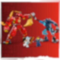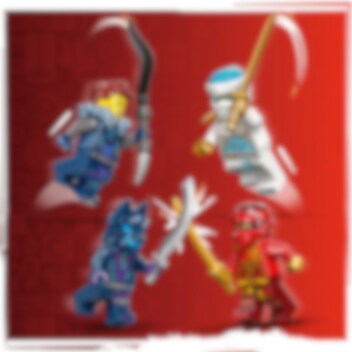 Kais Feuermech hat ein Cockpit und schwingt ein goldenes Schwert, damit es Kai und Zane vor dem Schattendojo mit der bösen Jordana und einem Wolfsjäger aufnehmen können. Und zum allerersten Mal kannst du jetzt die Teile von 3 megastarken Ninja-Mechs, die von Cole, Sora und Kai gelenkt werden, zu einem besonderen Mech zusammenfügen. Jeder dieser anpassbaren Mechs ist separat erhältlich. Die Beine, Arme, die Ausrüstung und den Oberkörper dieser Mechs kann man abnehmen und beliebig neu kombinieren.