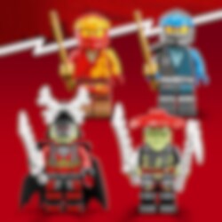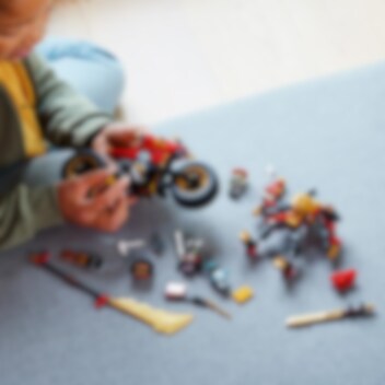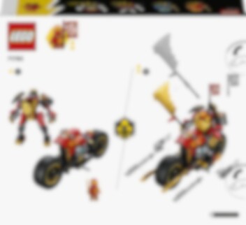 Kais Mech-Bike EVO (71783) ist ein Spielset, das Baumeisterinnen und Baumeister ab 7 Jahren sowie Fans cooler Flitzer eigene packende Duelle zwischen Gut und Böse austragen lässt. Das Set beinhaltet einen beweglichen Mech und ein cooles Bike. Durch ein Upgrade mit goldenen Seitenblenden und einer großen goldenen Klinge kann man das Motorrad in ein noch größeres Modell verwandeln. Duelle zwischen Gut und Böse Dieses Bauset beinhaltet 4 Minifiguren: Kai und Nya tragen Schwerter, der Skelett-König schwingt sein eigenes Schwert und der Skelett-Jäger hat eine Knochenhacke und ein Schwert. Wenn dein Kind die Herausforderung meistert, wird es mit dem Banner der Konzentration belohnt, das am Ninja-Bike befestigt werden kann. Cooles digitales Bauerlebnis für LEGO Baumeister Die LEGO Builder App begleitet dich und dein Kind auf ein leichtes und intuitives Bauabenteuer. Vergrößere und drehe 3D-Ansichten der Modelle, speichere Sets und verfolge deinen Baufortschritt.