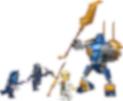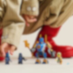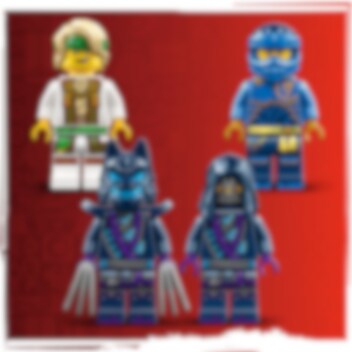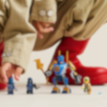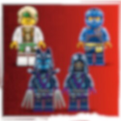 Mit Jays Battle Mech (71805) können Jungen und Mädchen die packenden Actionszenen aus der 2. Staffel der TV-Serie NINJAGO® Aufstieg der Drachen nachspielen. Dieses Ninja-Bauspielzeug beinhaltet einen coolen Mech, der Arme, Beine und Oberkörper bewegen kann, ein großes goldenes Schwert schwingt und mit seinen Shootern feuert. Außerdem enthält dieses Ninja-Spielset 4 NINJAGO Minifiguren und jede Menge Zubehör. Jay ist mit einem goldenen Schwert ausgerüstet, und die Minifigur Lloyd hält 2 goldene Katanas in den Händen. Der Wolfsklauenjäger hat lange Klauen an beiden Händen, und der Wolfswächter trägt eine Armbrust. Die anderen LEGO® NINJAGO Ninja-Bauspielzeuge für Kinder beinhalten Drachen, Fahrzeuge und Tempel, die Fans viele Rollenspieleund Abenteuer mit ihren Helden ermöglichen. Jedes dieser Abenteuer-Spielsets kann auch mithilfe der LEGO Builder App gebaut werden. Die App nimmt dich und dein Kind auf ein einfaches und intuitives Bauabenteuer mit. Ihr könnt 3D-Modellansichten vergröß ern und drehen, Sets speichern und euren Baufortschritt verfolgen.