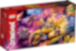 Das LEGO® NINJAGO® Spielset „Jays Golddrachen-Motorrad (71768) beinhaltet alles, was Ninja-Fans ab 7 Jahren brauchen, um packende Szenen aus der TV-Serie NINJAGO: Crystallized nachzustellen. Das NINJAGO Spielzeugmotorrad hat einen Drachenkopf mit beweglichem Maul und goldene Seitenverkleidungen. Bauset für begeisterte Ninja-Fans Dieses Ninja-Spielset beinhaltet neben einem Fahrzeug auch 2 Minifiguren: Golddrachen-Jay hat ein mächtiges Elementar-Goldnunchaku und 2 stachelbewehrte Golddrachenflügel. Der Vergeltungsstein-Krieger trägt einen Speer und wird von einer Kristallspinne begleitet. Kinder können spannende Abenteuer mit Golddrachen-Jay darstellen und NINJAGO City beschützen. Spielzeuge zum Sammeln, die Kinder in eine andere Welt versetzen! NINJAGO Spielzeuge lassen Kinder ihre Smartphones und Tablets weglegen und in eine faszinierende Fantasy-Actionwelt eintauchen. Eine fantastische Auswahl an Mechs, Autos, Jets, Drachen und Tempeln ermöglicht viele packende Duelle zwischen tapferen Ninja-Helden und üblen Bösewichten.