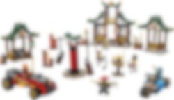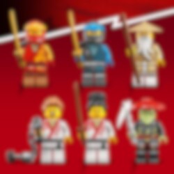Geh ins Ninja-Dojo, um mit Nya, Kai und Meister Wu an deinen Ninja-Künsten zu arbeiten. Im Trainingsbereich auf dem Hindernisparcours entwickelst du Kraft und Beweglichkeit. Aber sei stets auf der Hut, denn der Skelett-Jäger möchte ins Dojo einbrechen! Düse mit dem Ninja-Auto oder dem Motorrad los, um ihn aufzuhalten. Du kannst die 530 Teile aus der Box aber auch zu den in der Anleitung vorgeschlagenen neuen Ninja-Modellen zusammenfügen.