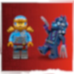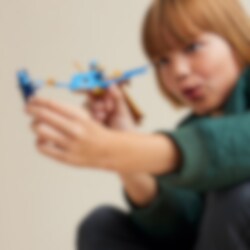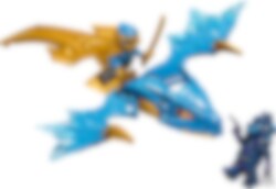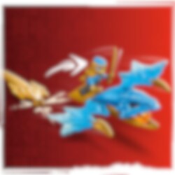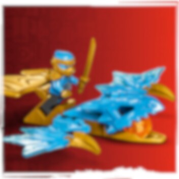 Lass die Drachenreiterin Nay auf ihrem blauen Drachen losfliegen, damit sie sich waghalsige Duelle mit einem Wolfsklauenjäger liefert! Setz Nya auf den Rücken des Drachen, drück seinen goldenen Schwanz nach unten und sieh dir an, wie Nya von der Drachenpower ins Getümmel katapultiert wird! Kann sie den Wolfsklauenjäger umstoßen und seinen scharfen Klauen ausweichen, um die neue NINJAGO® Welt zu retten?