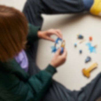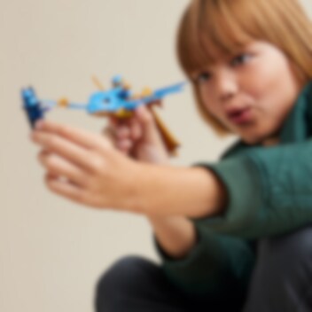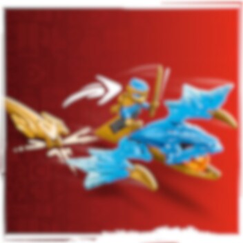 Jungen und Mädchen ab 6 Jahren können die Abenteuer aus der 2. Staffel der TV-Serie NINJAGO® Aufstieg der Drachen mit diesem Ninja-Spielset nachstellen. Nyas Drachengleiter (71802) lässt Kinder das allererste LEGO® NINJAGO Drachen-Actionspielzeug bauen. Schlägt man den goldenen Schwanz des Drachen dann nach unten, geht der Actionspaß so richtig los. Das Bauset beinhaltet 2 Minifiguren: Die Drachenreiterin Nya schwingt ein Katana und reitet auf dem blauen Drachen. Der Wolfsklauenjäger verfügt dagegen über scharfe Klauen. Kinder können die Ninja-Figuren packende Duelle austragen lassen. Der Sieger holt sich ein oranges Drachenpower-Element aus dem aufklappbaren Maul des blauen Drachen. In den anderen separat erhältlichen LEGO NINJAGO Bau- und Spielsets für Kinder finden junge Ninja-Fans Mechs, Fahrzeuge und Tempel für spannende Rollenspiele und Abenteuer. Jedes dieser Fantasy-Spielzeuge kann auch mithilfe der LEGO Builder App gebaut werden, die dich und dein Kind auf ein ebenso einfaches wie intuitives Bauabenteuer mitnimmt.