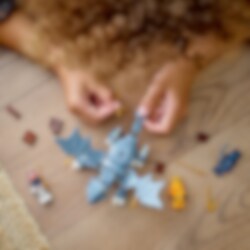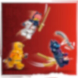 Mit Riyu der Babydrache (71810) können Jungen und Mädchen ab 6 Jahren viele Abenteuer aus der 2. Staffel der TV-Serie NINJAGO® Aufstieg der Drachen nachstellen. Dieses Spielset für Kinder beinhaltet ein Modell des Babydrachen Riyu, der Flügel, Beine und Schwanz bewegen kann. Riyu trägt auch einen Sattel, damit Minifiguren auf seinem Rücken reiten können. Dieses Ninja-Spielset beinhaltet 3 Minifiguren: Arin mit Kletterhaken und Katana, Sora mit einem Katana und einen bösen Wolfsjäger mit Schwert. Dein Kind findet in dem Set alles, was es braucht, um in die Rolle eines Ninja zu schlüpfen und sich spannende Duelle zu liefern. LEGO® NINJAGO Bau- und Spielsets für Kinder beinhalten Mechs, Fahrzeuge und Tempel für spannende Rollenspiele und Abenteuer. Jedes dieser Actionspielzeuge kann auch mithilfe der LEGO Builder App gebaut werden, die dich und dein Kind auf ein ebenso einfaches wie intuitives Bauabenteuer mitnimmt.