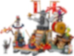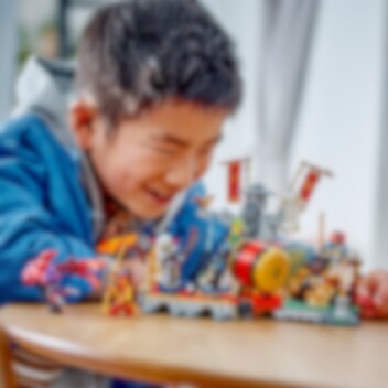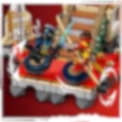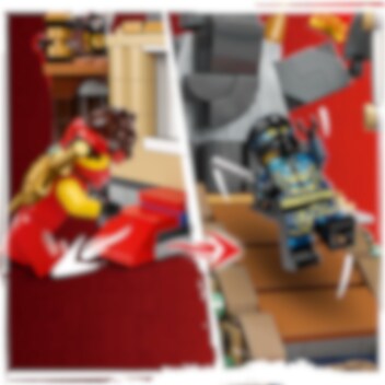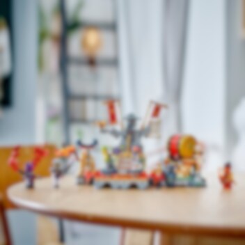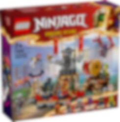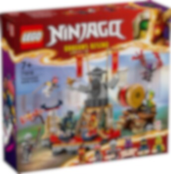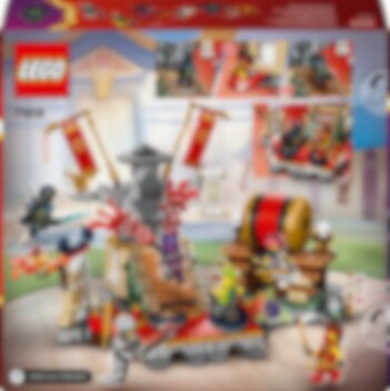 Diese detailreiche Turnier-Arena (71818) lässt Jungen und Mädchen ab 7 Jahren den dramatischen finalen Showdown aus der 2. Staffel der TV-Serie NINJAGO® Aufstieg der Drachen nachstellen. Dieses Ninja-Actionspielset enthält auch viele interaktive Funktionen für viele Stunden spannendes Spielvergnügen. Und nach dem Spielen zieht das spektakuläre Modell im Regal oder auf dem Nachttisch alle Blicke auf sich. Dieses LEGO® NINJAGO Set beinhaltet 2 bewegliche Plattformen, auf denen Kinder einen Ninja und einen Bösewicht packende Duelle austragen lassen können. Außerdem kann man eine große Walze von ihrem Ständer stoßen und in die Arena rollen lassen. Und wenn man an einem Hebel zieht, klappt die Treppe zusammen und lässt alle auf ihr stehenden Minifiguren hinunterrutschen. Dieses baubare Ninja-Spielzeug für Kinder beinhaltet 6 NINJAGO Minifiguren. Die Ninja Kai und Sora tragen ihre Turnierrüstung und brandneue Katanas für ihre Duelle mit einer Bande von Bösewichten: Cinder und einem Wolfsjäger sowie (exklusiv in diesem Set) dem Bösen Jay und Tox.