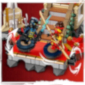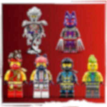 Geh in die Turnier-Arena, um einen Showdown zwischen Gut und Böse auszutragen! Kai und Sora tragen ihre Turnierrüstung und schwingen kurze Katanas, um es mit Cinder, einem Wolfsjäger, dem Bösen Jay und Tox aufzunehmen. Lass dich aber bloß nicht von der großen Walze überrollen. Und hüte dich vor der Treppe, die zusammenklappt und dich hinabrutschen lässt! Zeig, dass ein Champion in dir steckt!