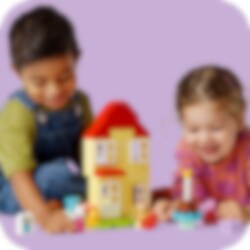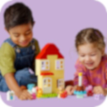 Überrasche Fans von Peppa Wutz mit einer Einladung zur Party! Peppa Wutz' Geburtstagshaus (10433) lässt Mädchen und Jungen ab 2 Jahren mit Peppa und ihren Freunden feiern. Dieses Spielzeug strotzt vor Funktionen, die Kleinkinder aus der TV-Serie Peppa Wutz kennen. Das Spielset beinhaltet die Figuren Peppa Wutz, Pedro Pony und Luzie Locke sowie Peppas Teddy. Über eine Leiter gelangt man ins Schlafzimmer des legendären Hauses. Und in der Küche können Kleinkinder so tun, als würden sie eine Geburtstagstorte backen. Am Waschbecken im Badezimmer können Erwachsene erklären, wie wichtig das Händewaschen ist – vor allem bevor man Torte isst! LEGO® DUPLO® Peppa Wutz Spielzeuge zum Bauen und Umbauen sollen Vorschulkindern einige Fähigkeiten beibringen. Kleinkinder lernen, logisch zu denken, wenn sie das echte Leben nachstellen, den typischen Ablauf einer Party darstellen und Freunde begrüßen, Geschenke überreichen und die Torte anschneiden. Wenn sich Kleinkinder vorstellen, wie viel Spaß es machen würde, an solch einer fröhlichen Feier teilzunehmen, lernen sie ihre Gefühle auszudrücken.