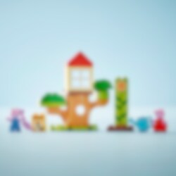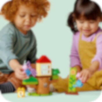 LEGO® DUPLO® Peppa Wutz' Garten mit Baumhaus (10431) ist ein tolles Set, um Kleinkinder ab 2 Jahren für die freie Natur zu begeistern. Dieses faszinierende Spielzeug lädt Jungen und Mädchen im Vorschulalter zu Rollenspielen im Garten ein, wo sie mit Peppa Wutz und Schorsch eine Sonnenblume wachsen lassen. Diesem Spielzeug zum Bauen und Umbauen liegen viele kreative Zubehörelemente bei, die kleine Fans von Peppa Wutz zum Spielen anregen, unter anderem eine Gießkanne und eine Spatengabel. Kleinkinder üben ihre Fingerfertigkeit und das Sortieren, wenn sie die Steine stapeln, um die Blume wachsen zu lassen. Anschließend können die beiden Figuren im Baumstamm Verstecken spielen oder sich im Baumhaus ausruhen. Dieses LEGO DUPLO Peppa Lernspielzeug lässt Vorschulkinder verschiedene Fähigkeiten entwickeln. Wenn sie die Sonnenblume „wachsen“ lassen, lernen sie Probleme zu lösen und hartnäckig zu bleiben. Und wenn sie in die Rolle von Peppa Wutz und Schorsch schlüpfen, die im Garten zusammenarbeiten und spielen, erfahren sie, wie man sich um die Natur kümmert und Gefühle ausdrückt.