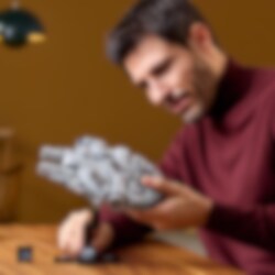 Die klassische Star Wars Saga findet jetzt in deinem Wohnzimmer ihre Fortsetzung – mit dem LEGO® Star Wars Millennium Falcon (75375) zum Sammeln, Bauen und Ausstellen. Mach dich mit der Konzentration und Achtsamkeit eines Jedi ans Werk und bilde dieses legendäre Sternenschiff aus Star Wars: Eine neue Hoffnung mit all seinen vertrauten Details nach. Stell dein Modell dann in einem dynamischen Winkel auf dem baubaren Ständer aus, um den Anschein zu erwecken, der Millennium Falcon würde fliegen. Füge das Namensschild und den Stein zum 25-jährigen LEGO Star Wars Jubiläum hinzu, um das spektakuläre Erinnerungsstück zu vollenden. Dieses baubare Star Wars Modell gehört zu einer Kollektion von LEGO Star Wars Sternenschiffen mittleren Maßstabs. Das Set ist eine tolle Belohnung für dich selbst und ein fantastisches Geschenk für andere Star Wars Fans und Sammler. Dieses einzigartige LEGO Star Wars Set für kreative Erwachsene verspricht eine komplexe Bauaufgabe. Und die LEGO Builder App bietet ein noch besseres Bauerlebnis, denn sie lässt dich 3D-Modellansichten vergrößern und drehen, deinen Baufortschritt verfolgen und all deine Sets an einem Ort speichern.