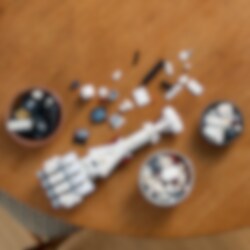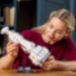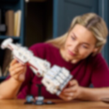 Ruf dir die Faszination der Eröffnungsszene von Star Wars: Ein neue Hoffnung mit diesem baubaren LEGO® Modell der Tantive IV immer wieder in Erinnerung. Spüre die Macht deiner Kreativität, wenn du die unverwechselbaren Details dieses legendären Sternenschiffs nachbildest, das gleich bei seinem allerersten Auftritt von einem Sternzerstörer verfolgt wurde. Stell dein Star Wars Sternenschiff auf dem baubaren Ständer aus und vollende den spektakulären Hingucker mit dem Namensschild und dem Stein zum 25-jährigen LEGO Star Wars Jubiläum. Dieses Modell zum Bauen und Ausstellen gehört zur Kollektion der LEGO Star Wars Sternenschiffe mittleren Maßstabs. Das Set ist eine tolle Belohnung für dich selbst und ein fantastisches Geschenk für andere Star Wars Fans und Sammler. Dieses einzigartige LEGO Star Wars Modell derTantive IV bietet kreativen Erwachsenen ein anspruchsvolles Bauerlebnis. Und die LEGO Builder App verspricht sogar noch mehr Bauspaß, denn sie lässt dich 3D-Modellansichten vergrößern und drehen, deinen Baufortschritt verfolgen und all deine Sets an einem Ort speichern.
