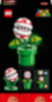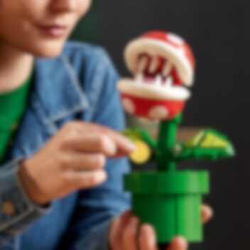 Bilde eine Piranha-Pflanze aus der Welt von Super Mario in bester LEGO® Art nach! Baue den Gegner, der aus einer Röhre herauswächst, und bewege den Kopf, den Mund, den Stängel und die Blätter, um die Pflanze in legendäre Posen zu bringen. Dieses faszinierende Modell ist ein cooler Blickfang für dein Wohnzimmer oder Büro. Sieh nur, Münzen liegen diesem Set auch bei. Wofür braucht man die wohl? Baue die Piranha-Pflanze und finde es heraus!
