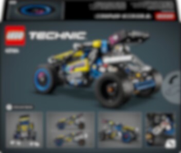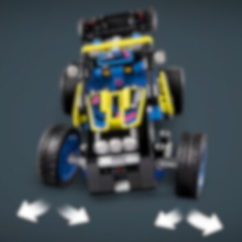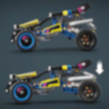 Dieser coole Buggy verspricht jede Menge Spielspaß. Baue den LEGO® Technic Offroad Rennbuggy und schick ihn dann auf halsbrecherische Testfahrten ins Gelände. Schau dir die Federung und den 4-Zylindermotor genau an. Probier dann die coole Kipplenkung, mit deren Hilfe du den Buggy zu beiden Seiten neigen kannst. Einfach megastark!