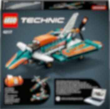 Flieg mit dem starken LEGO® Technic Rennflugzeug los. Sieh dir die hammermäßige Lackierung und die Aufkleber der Sponsoren an – genau wie an einem echten Rennflugzeug. Wirf den Propeller an und roll zur Startbahn, um gleich abheben zu können. Zeig dann die Flugmanöver der weltbesten Piloten. Hast du Lust auf eine andere coole Bauherausforderung? Super! Denn du kannst dein Rennflugzeug auch in einen Düsenflieger umbauen.