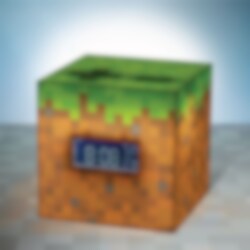 Machen Sie die Morgenstunden spannender mit diesem coolen Minecraft-Wecker! Die Uhr ist wie ein Erd- und Grasblock aus dem Spiel gestaltet und ein perfektes Detail im Kinderzimmer für alle Minecraft-Fans.