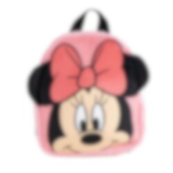 Machen Sie den Alltag ein wenig süßer mit diesem rosa Kinderrucksack mit Motiv von Minnie Maus! Der Rucksack besteht aus weichem Polyesterplüsch und zeigt Minnies lächelndes Gesicht, eine große Schleife und weiche Ohren – perfekt für kleine Kinder, die ihre Lieblingssachen mit in die Kita oder auf Ausflüge nehmen möchten.