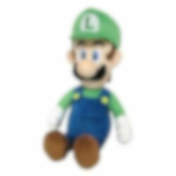 Luigi ist etwa 25 cm hoch und besteht aus 100 % Polyester.