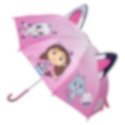 Er verfügt über 8 Streben und wird manuell geöffnet. Mit seinem stilvollen Gabby’s-Dollhouse-Motiv wird dieser Regenschirm garantiert zum Favoriten aller kleinen Fans der Serie.