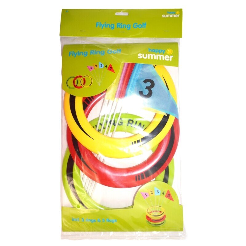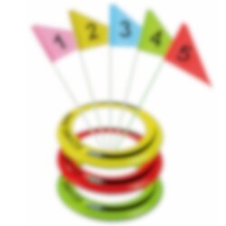 Gestalten Sie einen lustigen Aktivitätsparcours im Garten, am Strand oder im Park mit diesem Wurfring-Golfset. Das Set enthält drei farbenfrohe Ringe und fünf Zielflaggen mit unterschiedlichen Punktwerten, was es einfach macht, das Spiel zu variieren und eigene Spielregeln zu erfinden.