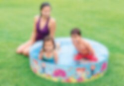 Snapset-Kinderpool von Intex mit coolen Schnorchelmotiven, die das Badevergnügen im Garten zu einem absoluten Erlebnis machen. Einfach das Becken ausrollen, mit Wasser füllen und schon ist es bereit, alle schwimmfreudigen Kinder willkommen zu heißen. Der Pool ist ab 3 Jahren unter Aufsicht eines Erwachsenen zugänglich.