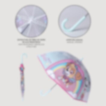 Machen Sie Regentage noch lustiger mit diesem niedlichen Kinderregenschirm mit Skye aus Paw Patrol! Der Schirm hat einen Durchmesser von ca. 71 cm und besteht aus robustem PoE und Fiberglas. Er verfügt über 8 Streben und wird manuell geöffnet. Das farbenfrohe Design mit Skye und Marshall macht diesen Schirm zu einem Favoriten bei allen kleinen Fans der Serie.