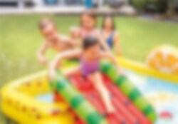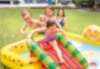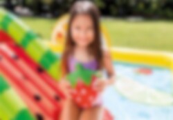 Mit dem Intex Fun 'N Fruity Spielcenter wird der Sommer für Ihre Kinder noch spannender. Es verfügt über eine Rutsche, aufblasbare Früchte und Wassersprüher für endlosen Wasserspaß. Einfach anzuschließen an einen Gartenschlauch. Geeignet für Kinder ab 3 Jahren.