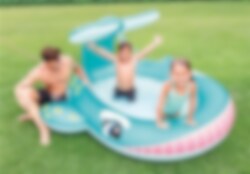 Der Intex Spritzpool, der einen niedlichen Wal darstellt, macht das Badeerlebnis an heißen Sommertagen perfekt. Schließen Sie den Gartenschlauch an, um die Walflosse Wasser spritzen zu lassen. Geeignet für Kinder ab 2 Jahren unter Aufsicht eines Erwachsenen.