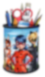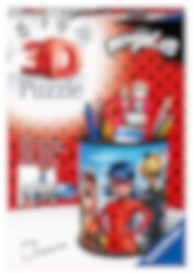 3D-Puzzle in Form eines Bleistiftständers mit einem Miraculous Ladybug-Motiv, das nach Fertigstellung als Dekoration auf Ihrem Schreibtisch verwendet werden kann. Das 3D-Puzzle ist ca. 9 cm hoch. Für dieses Puzzle wird kein Kleber benötigt, einfach bauen.