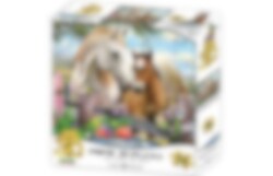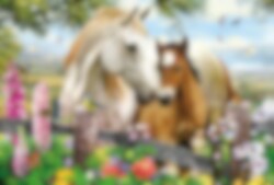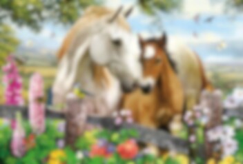 Wenn jedes Teil zusammenpasst, entsteht eine harmonische Szene mit Pferden, die einen sonnigen Tag auf der Koppel genießen. Dieses Puzzle ist nicht nur eine lustige Aktivität, sondern auch ein wunderschönes Kunstwerk, das jeden Raum schmücken kann.