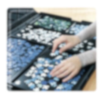 Die Puzzlematte mit Stauraum für 300–1000 Teile ist ein intelligentes Produkt mit fünf Abschnitten zum Aufbewahren der Puzzleteile. Sie enthält auch eine Puzzlematte zum Platzieren von Puzzles mit 300–1000 Teilen. Jetzt ist es einfacher, Ihr Puzzle zu bewegen und mitzunehmen, während es gebaut wird.