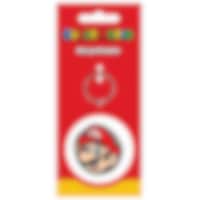 Ein lustiger Schlüsselring von Super Mario mit Yoshis lächelndem Gesicht auf einer runden Gummischeibe mit grünem Rand. Er funktioniert dank der Drehfunktion sowohl als Schlüsselring als auch als Fidget-Spielzeug.